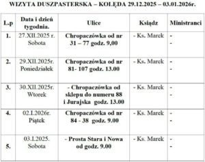Rozkład Kolędy w roku 2025/26