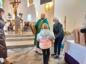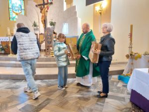 7. Przy wyjściu z kościoła możemy złożyć do stojącego tam pudełka produkty