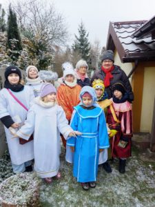 Po uroczystym rozesłaniu przez ks. Proboszcza kolędnicy misyjni, ubrani w barwne i piękne stroje, wyruszyli z kolędą do domów naszej parafii. W tym roku swoim śpiewem i modlitwą wspierali dzieci z Sri Lanki. Odwiedziliśmy około 100 rodzin, spotykając się wszędzie z serdecznym przyjęciem i otwartymi sercami. Uroczyste zakończenie kolędowania odbyło się 6 stycznia w kościele parafialnym – Trzej Królowie przynieśli w procesji skarbonkę, pamiątkę kolędowania oraz kronikę. Na zakończenie Mszy Świętej wszyscy raz jeszcze wspólnie zakolędowali. Dzięki zaangażowaniu 22 dzieci oraz 6 dorosłych wolontariuszy zebrano 4952 zł oraz wiele słodyczy. Serdecznie dziękujemy wszystkim za życzliwość i wsparcie.