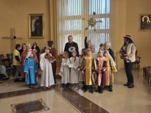 Podczas drugiej części spotkania, która odbyła się we wspólnocie Betlejem w Jaworznie, nasze dzieci zaprezentowały krótką scenkę kolędniczą, a następnie wspólnie z gośćmi i mieszkańcami Betlejem śpiewały kolędy. Na zakończenie wszystkich uczestników pobłogosławił Ksiądz Biskup.