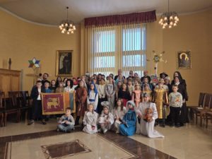 3 stycznia w Kurii Diecezjalnej w Sosnowcu dzieci z naszej parafii wraz z opiekunami uczestniczyły w spotkaniu Kolędników Misyjnych z bp. Arturem Ważnym. W wydarzeniu wzięli udział także zaproszeni goście z Warszawy, Lublina i Sosnowca, związani z Papieskimi Dziełami Misyjnymi oraz Papieskim Dziełem Misyjnym Dzieci.